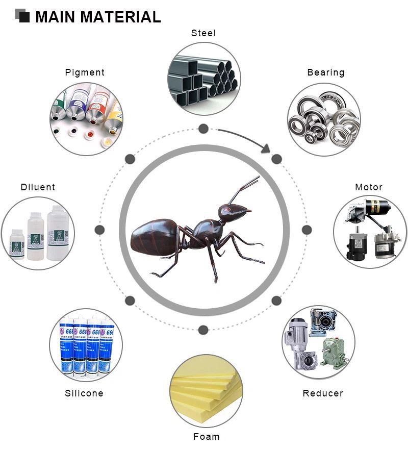 Optional Functions | 1.Mouth moving, 2.Insect make sounds or the natural environment’s sounds around them, 3.Head turning up and down, left to right, 4.Feeler moving, 5.Fore paws moving, 6.Wings unfold and fold with flap the wings, etc. Please contact us to learn more we can do. |